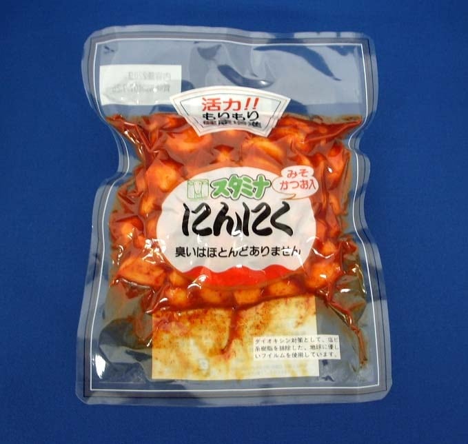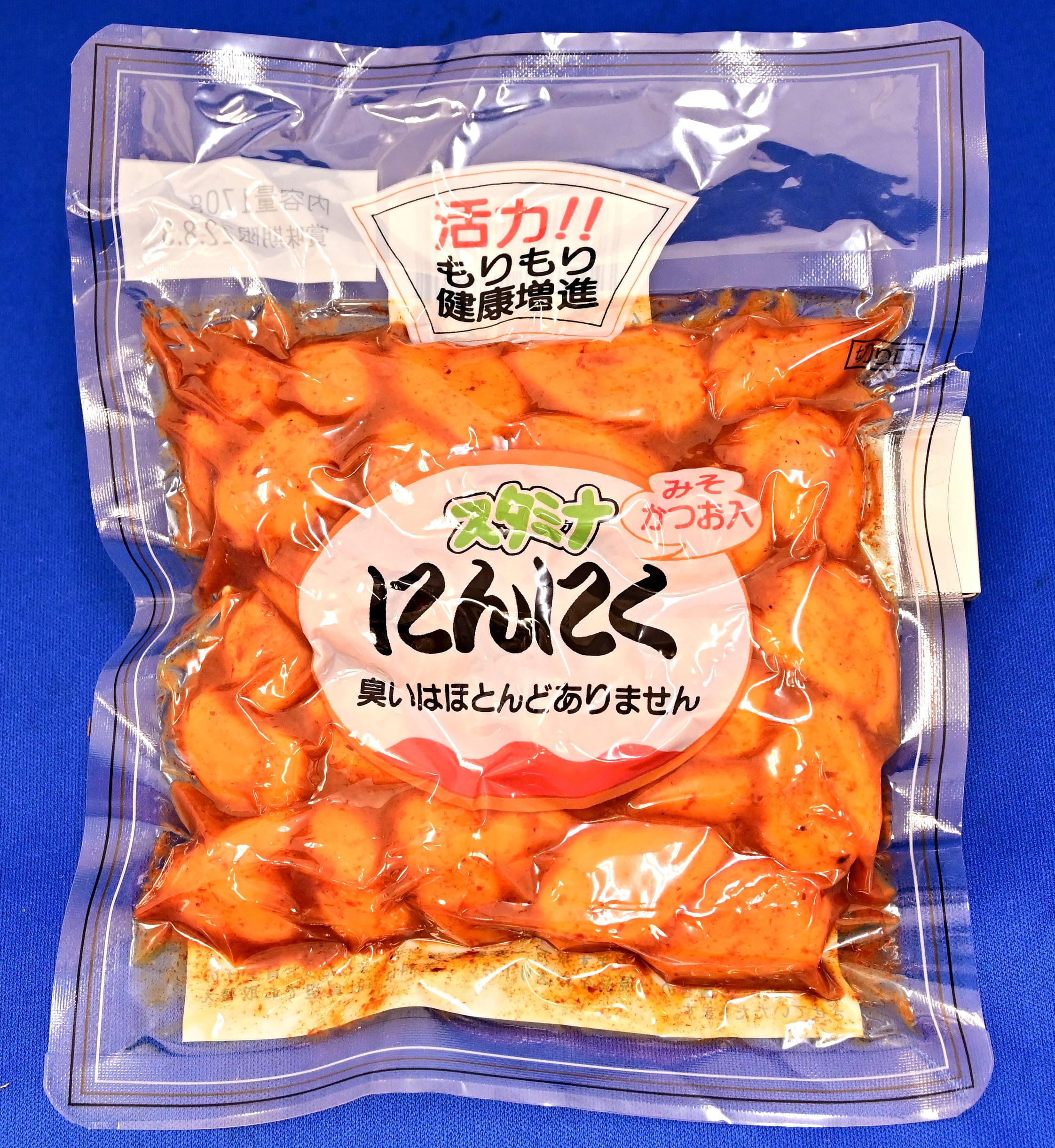 少し甘めのみそにかつおの風味をブレンドしたにんにく漬です。